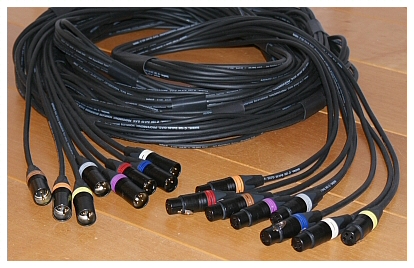 8 channel multi-core cable made with 8 microphone cables. 12 channel multi-core cable, Socapex to XLR .